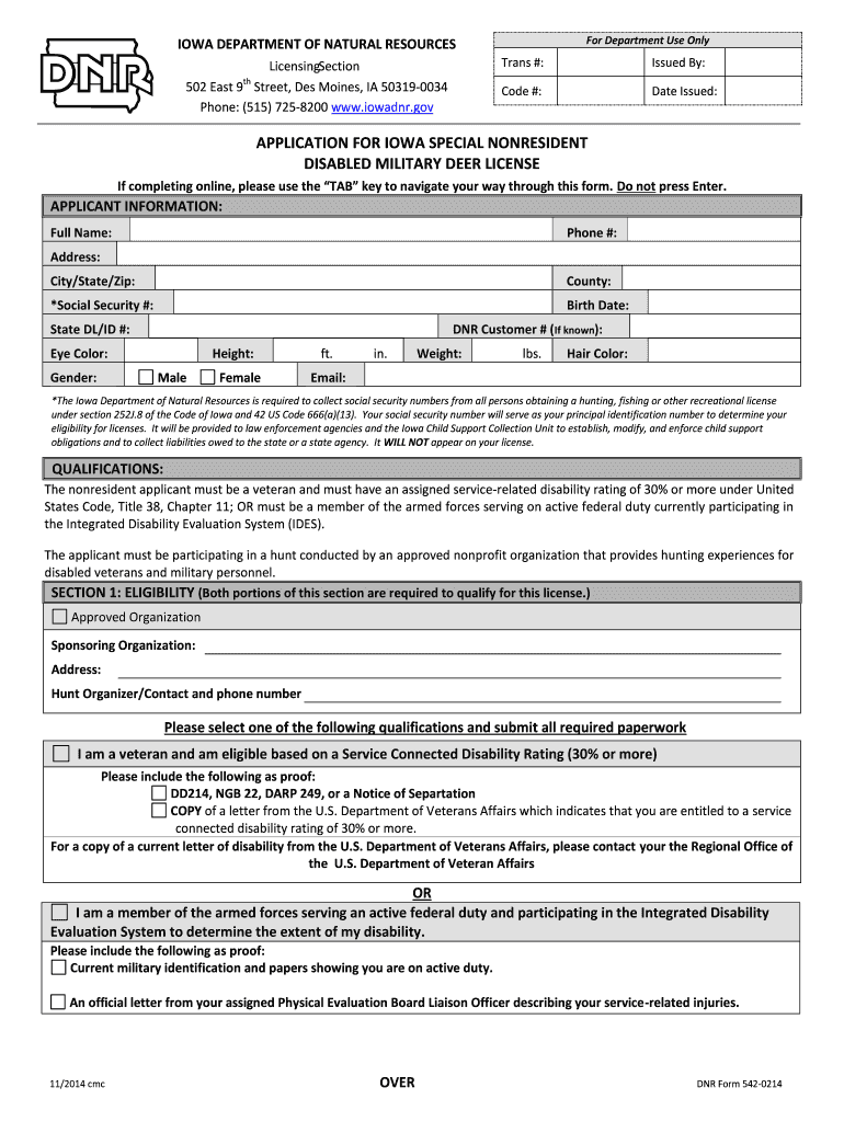 Get the free DISABLED MILITARY DEER LICENSE - iowadnr
