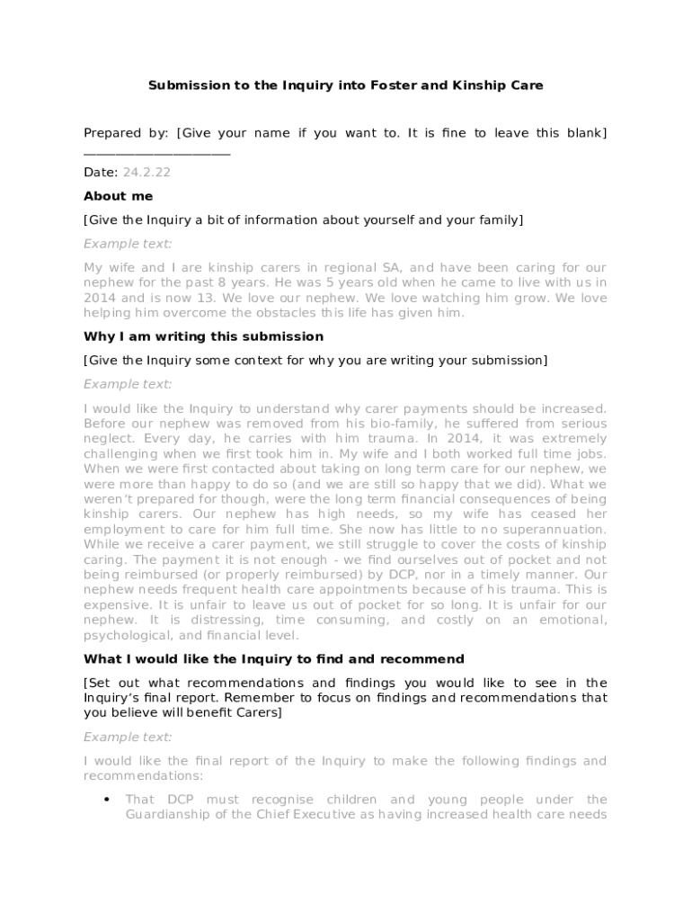 New* Sample Submission Template for Carer Payments - cfc-sa org template instructions