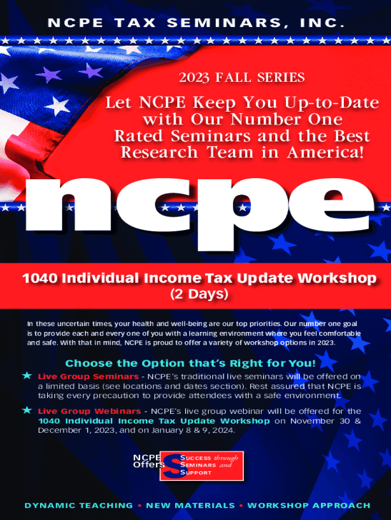 NCPE TAX SEMINARS, INC.2023 FALL SERIESLet NCPE Keep You UptoDate with Our Number One Rated Seminars and the Best Research Team in America!Corporations (C&S) and Partnerships (LLCs) Workshop Featuring