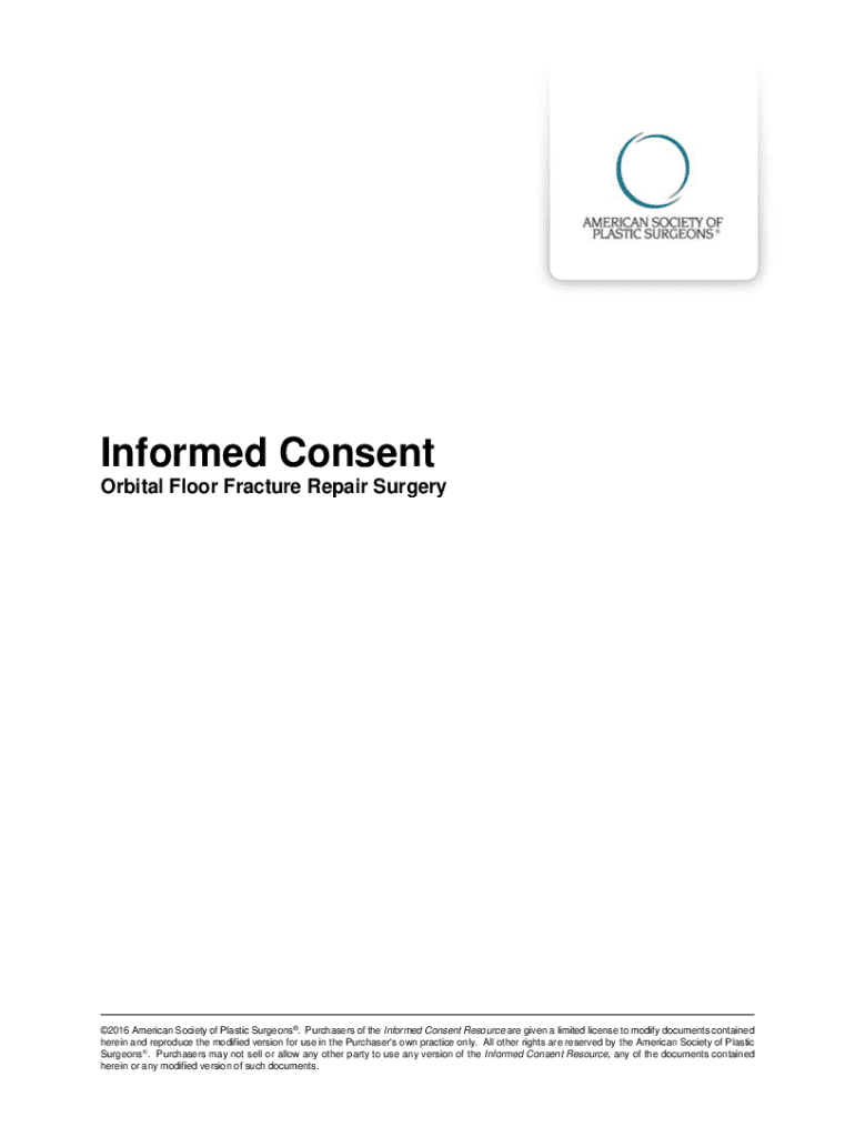 Informed Consent Orbital Floor Fracture Repair Surgery2016 American Society of Plastic Surgeons. Purchasers of the Informed Consent Resource are given a limited license to modify documents contained