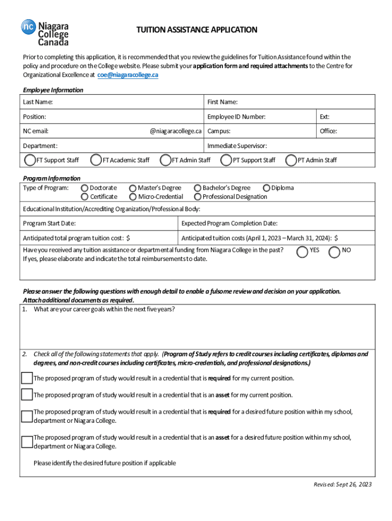 TUITION ASSISTANCE APPLICATION Prior to completing this application, it is recommended that you review the guidelines for Tuition Assistance found within the policy and procedure on the College website.