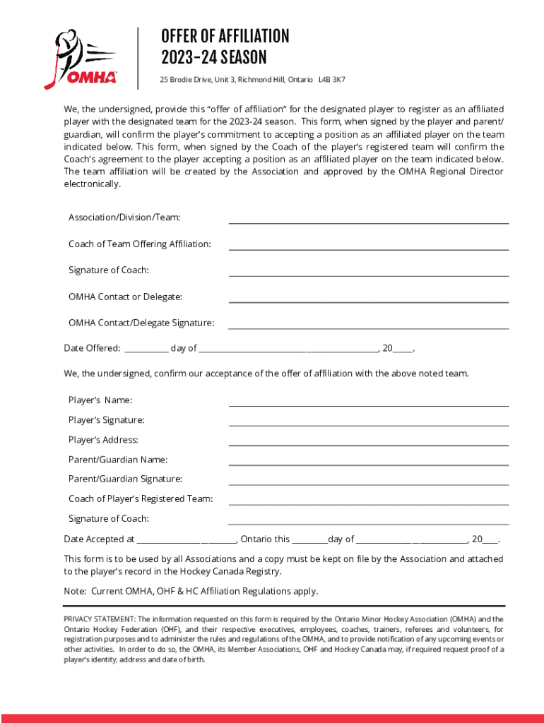 The affiliated players tweed minor form is needed by individuals who wish to join or participate in the Tweed Minor Hockey organization as affiliated players. Affiliated players are those who are not regular members of the organization but may be called upon to fill in for regular team members in certain circumstances like tournaments, exhibitions, or practices.