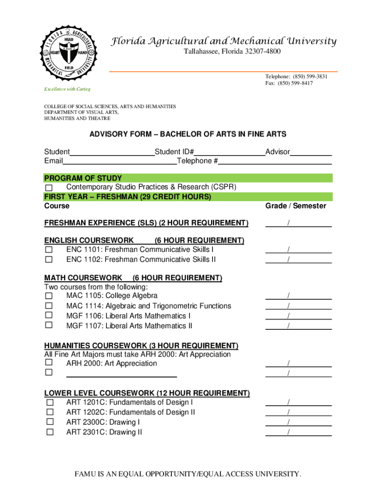 Get the free Program: Fine Arts Minor - Florida A&M University