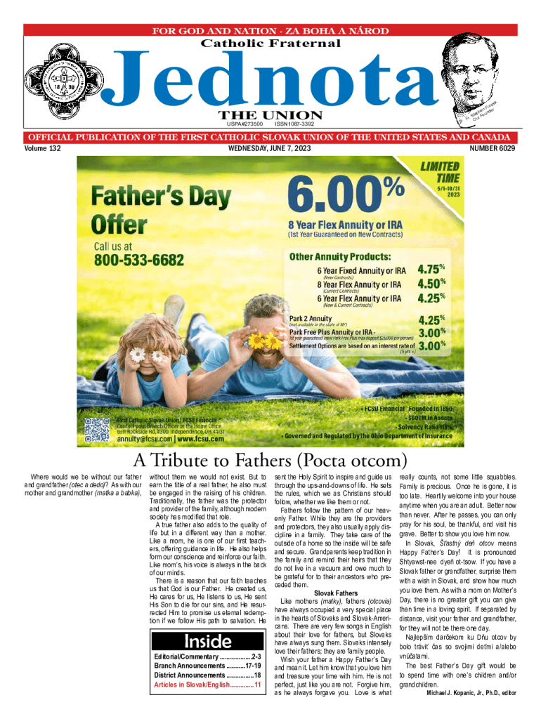 Jednota Catholic FraternalTHE UNION USPA#273500Volume 132ISSN10873392WEDNESDAY, JUNE 7, 2023ke urd nF r he unde p Ste Fo Fr. OurNUMBER 6029A Tribute to Fathers (Pocta otcom)Where would we be without