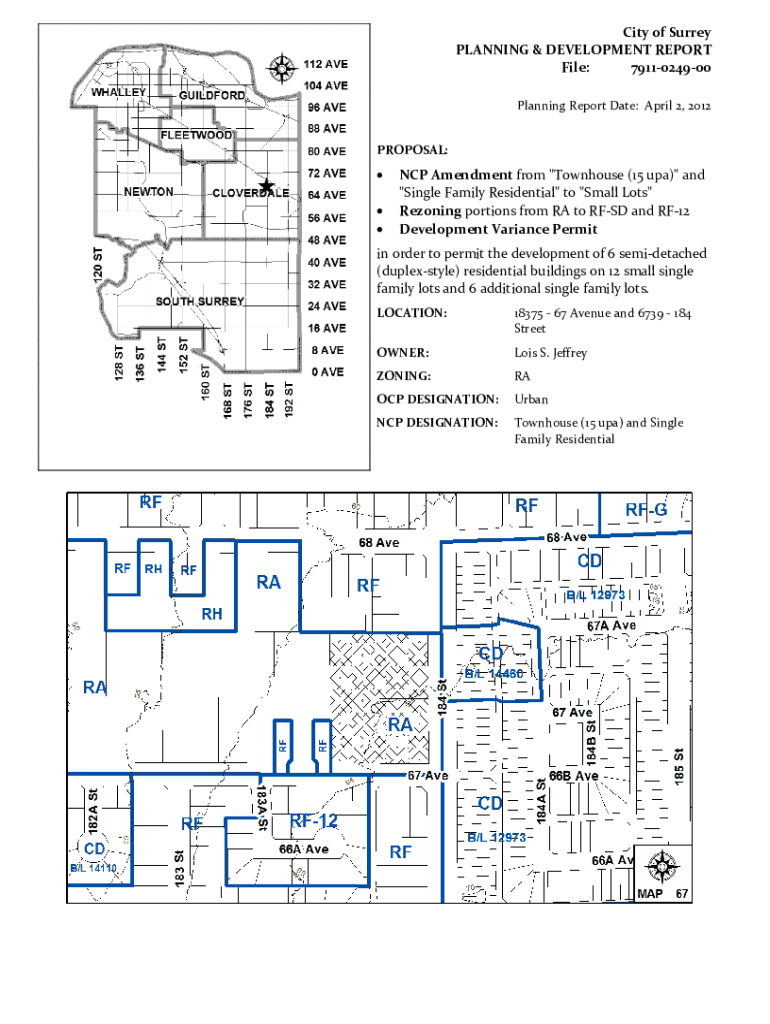 Get the free PLANNING & DEVELOPMENT REPORT File: 7911-0249-00