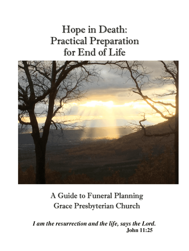 Hope in Death: Practical Preparation for End of LifeA Guide to Funeral Planning Grace Presbyterian Church I am the resurrection and the life, says the Lord. John 11:25GRACE PRESBYTERIAN CHURCH 9301