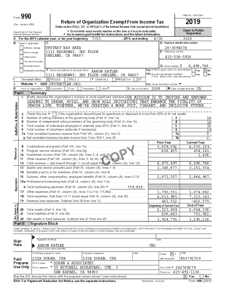 Form990OMB No. 154500472019Return of Organization Exempt From Income Tax(Rev. January 2020)Under section 501(c), 527, or 4947(a)(1) of the Internal Revenue Code (except private foundations)G Do not