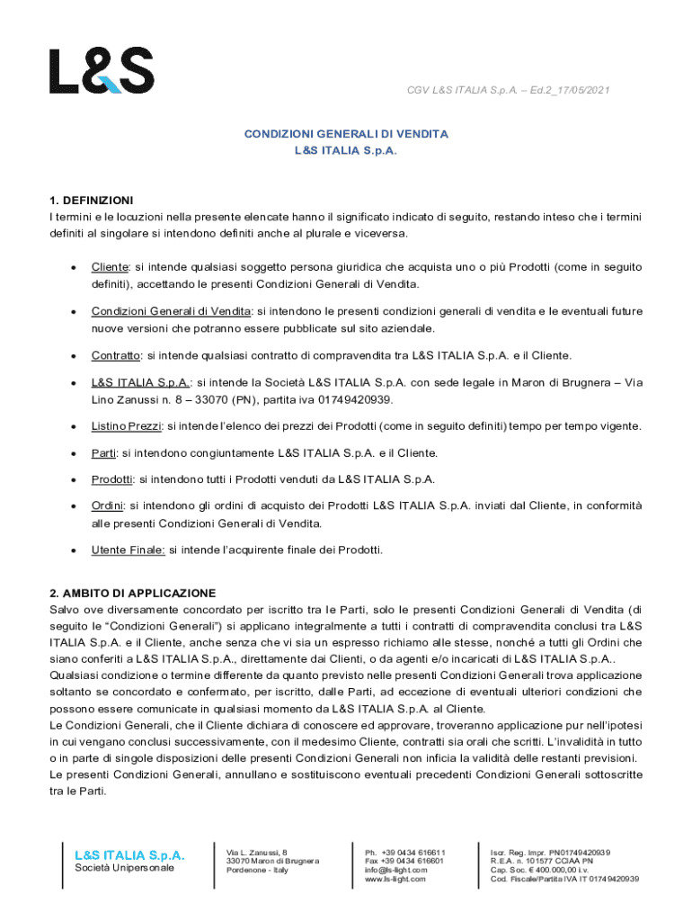 CGV L&S ITALIA S.p.A. Ed.2_17/05/2021CONDIZIONI GENERALI DI VENDITA L&S ITALIA S.p.A.1. DEFINIZIONI I termini e le locuzioni nella presente elencate hanno il significato indicato di seguito, restando