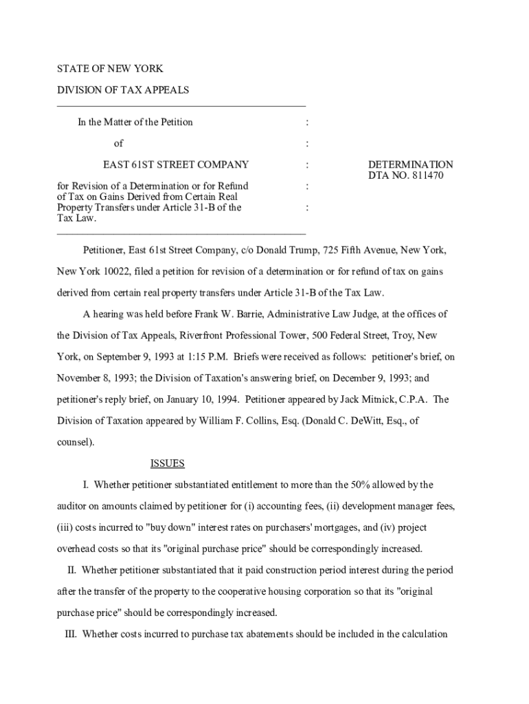 STATE OF NEW YORK DIVISION OF TAX APPEALS ___ In the Matter of the Petition of: :EAST 61ST STREET COMPANY:for Revision of a Determination or for Refund : of Tax on Gains Derived from Certain Real