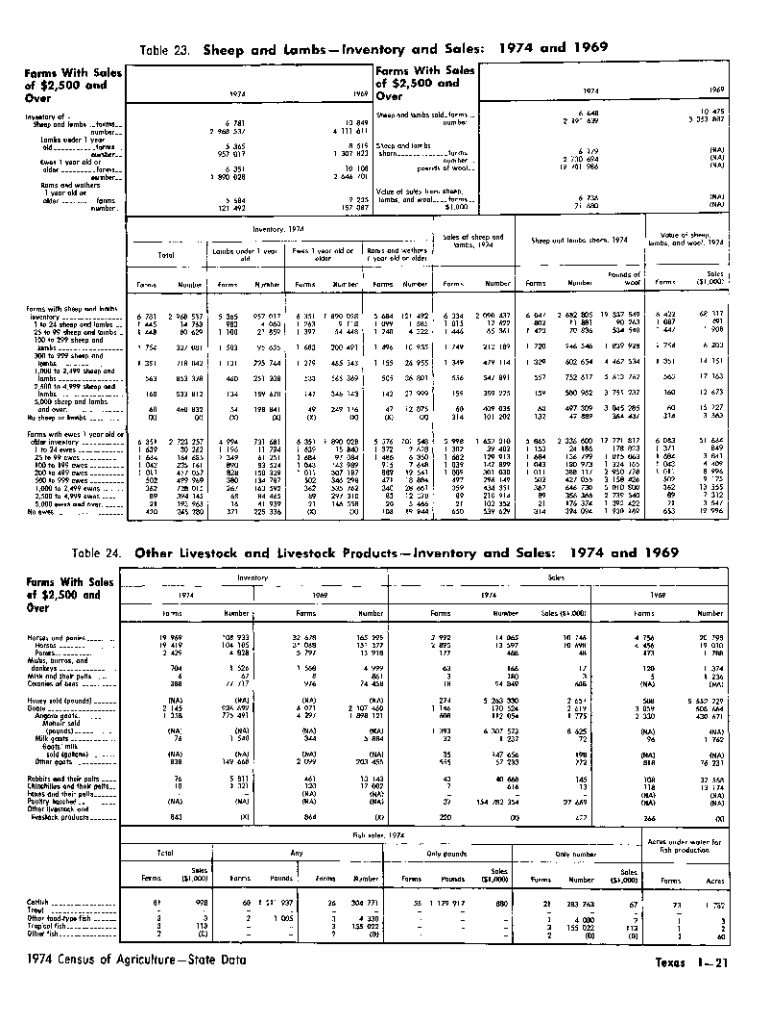 Table 23.1974 and 1969Sheep and Lambs Inventory and Sales:Farms With Sales of $2,500 and Over197419696 781 2 968 53710 849 4 111 6115 365 957 0178 519 1 307 8236 351 1 890 02810 108 2 646 7015 684