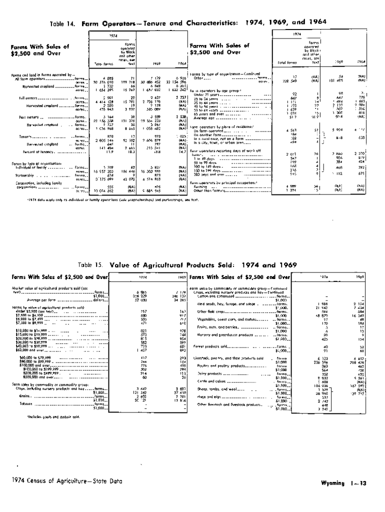 Farm Operators Tenure and Characteristics:Table 14.1974, 1969, and 1964 19741974Total farmsForms operated by Black and other races, see textFarms With Sales of $2,500 and OverFarms and land in farms