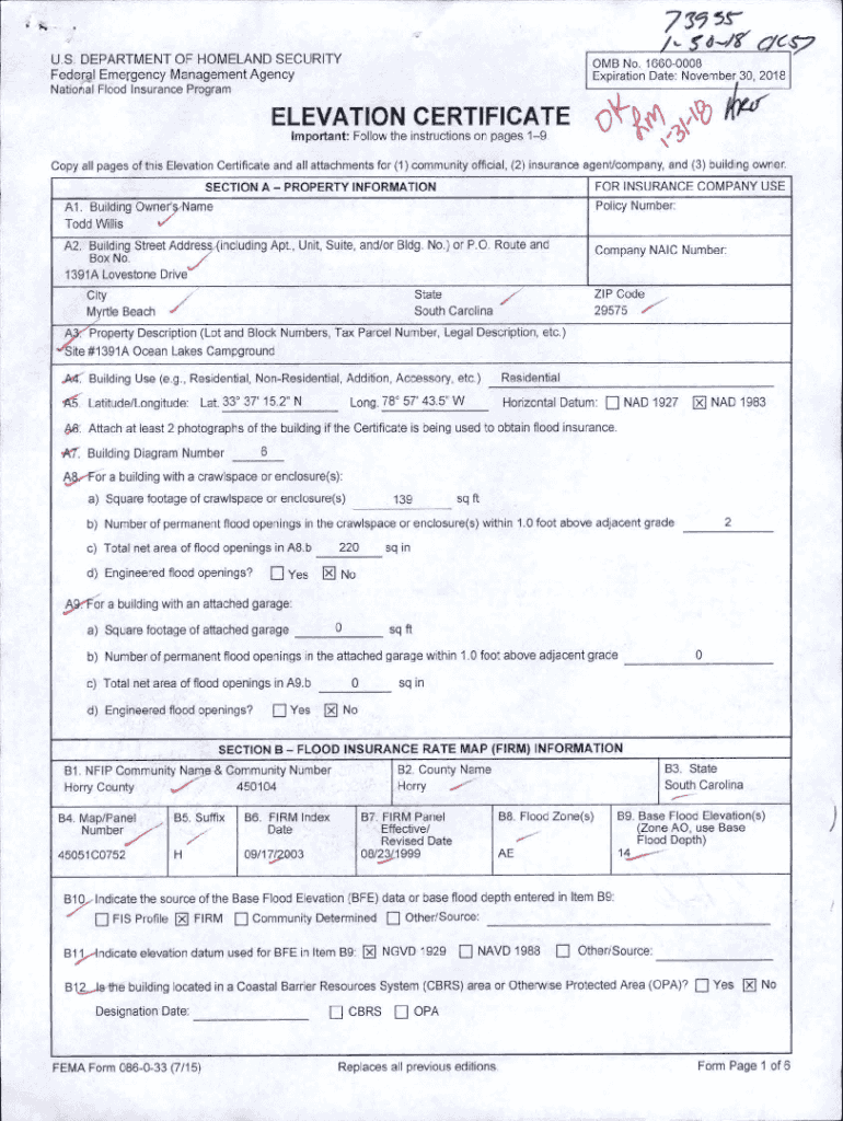 U.S. DEPARTMENT OF HOMELAND SECURITY Federal Emergency Management Agency0MB No. 16600008 Expiration Date: November 30, 2018National Flood Insurance ProgramELEVATION CERTIFICATE Important: Follow the