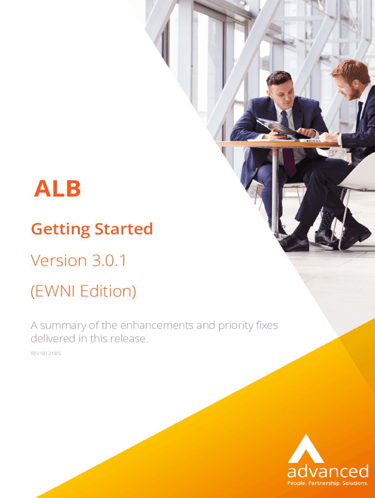 ALB Getting Started Version 3.0.1 (EWNI Edition) A summary of the enhancements and priority fixes delivered in this release. REV181218ISDisclaimer Copyright Advanced Computer Software Group Ltd 2018.