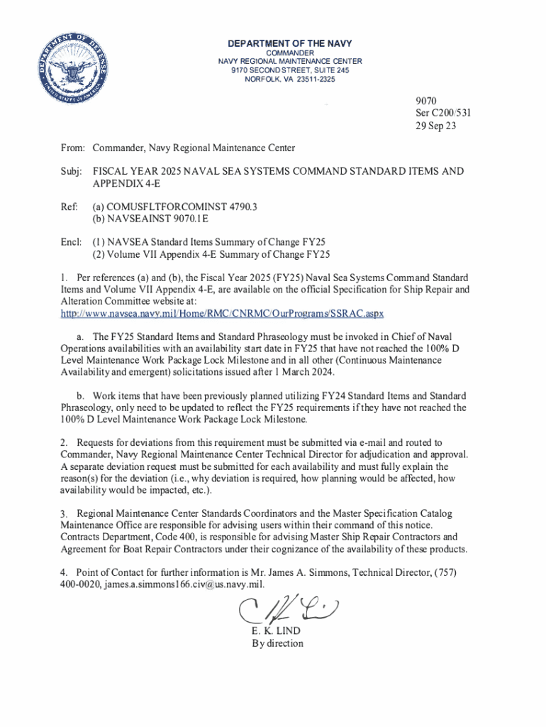 DEPARTMENT OF THE NAVYCOMMANDER NAVY REGIONAL MAINTENANCE CENTER 9170 SECOND STREET, SUITE 245 NORFOLK, VA 2351123259070 Ser C200/531 29 Sep 23 From: Commander, Navy Regional Maintenance Center Subj:FISCAL