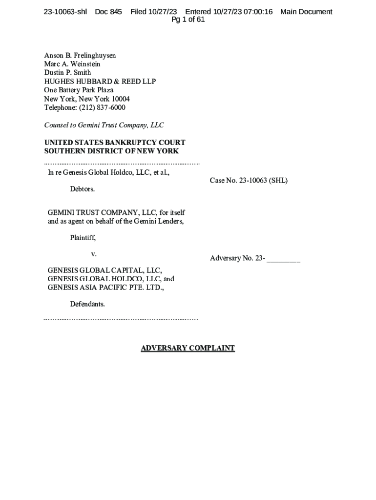 2310063shlDoc 845Filed 10/27/23 Entered 10/27/23 07:00:16 Pg 1 of 61Main DocumentAnson B. Frelinghuysen Marc A. Weinstein Dustin P. Smith HUGHES HUBBARD & REED LLP One Battery Park Plaza New York,