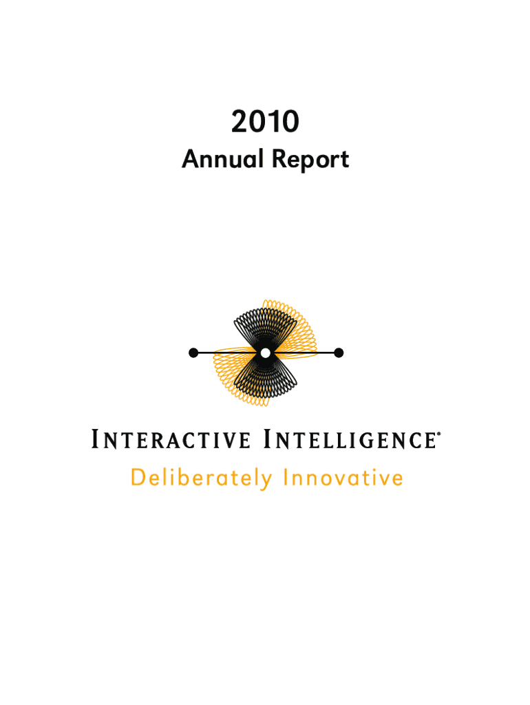 2010 Annual ReportGrowth in High Gear To our Shareholders, Growth is what a company makes it. In 2010, our aim was to return to the pace of growth Interactive Intelligence achieved in the two years