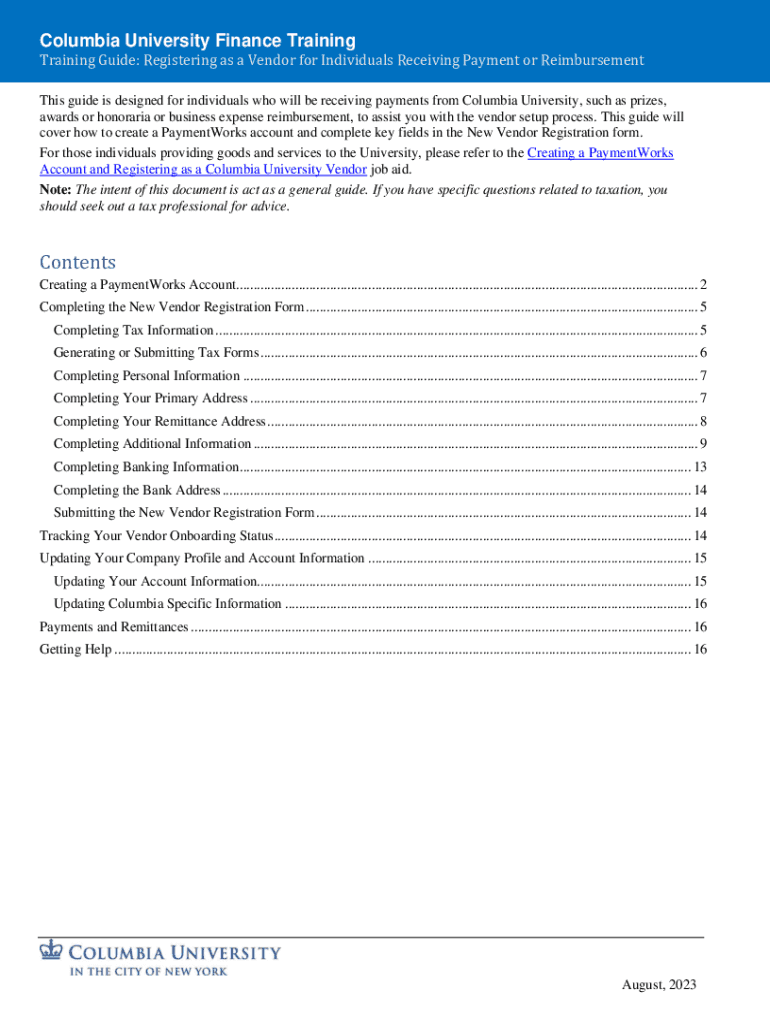 Columbia University Finance Training Training Guide: Registering as a Vendor for Individuals Receiving Payment or Reimbursement This guide is designed for individuals who will be receiving payments