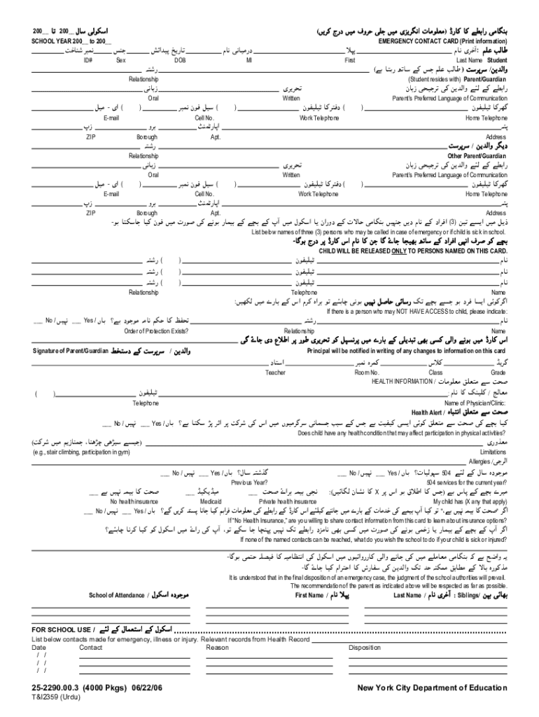 200__ 200__ G /( 497 DK / 2) 9 /9 SCHOOL YEAR 200__ to 200__ ID#/ 9H 97DOBMIFirstSexEMERGENCY CONTACT CARD (Print information) H *: Last Name Student ( 9 ) //K9 Relationship : Oral / (Written