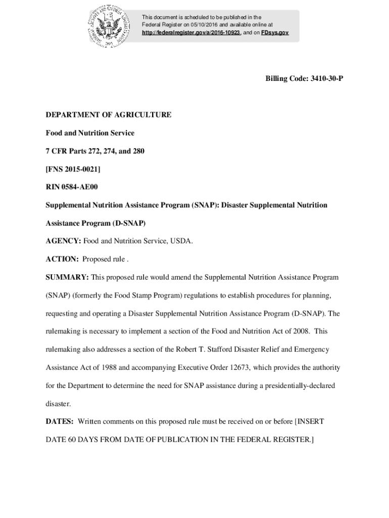 This document is scheduled to be published in the Federal Register on 05/10/2016 and available online at http://federalregister.gov/a/201610923, and on FDsys.govBilling Code: 341030PDEPARTMENT OF