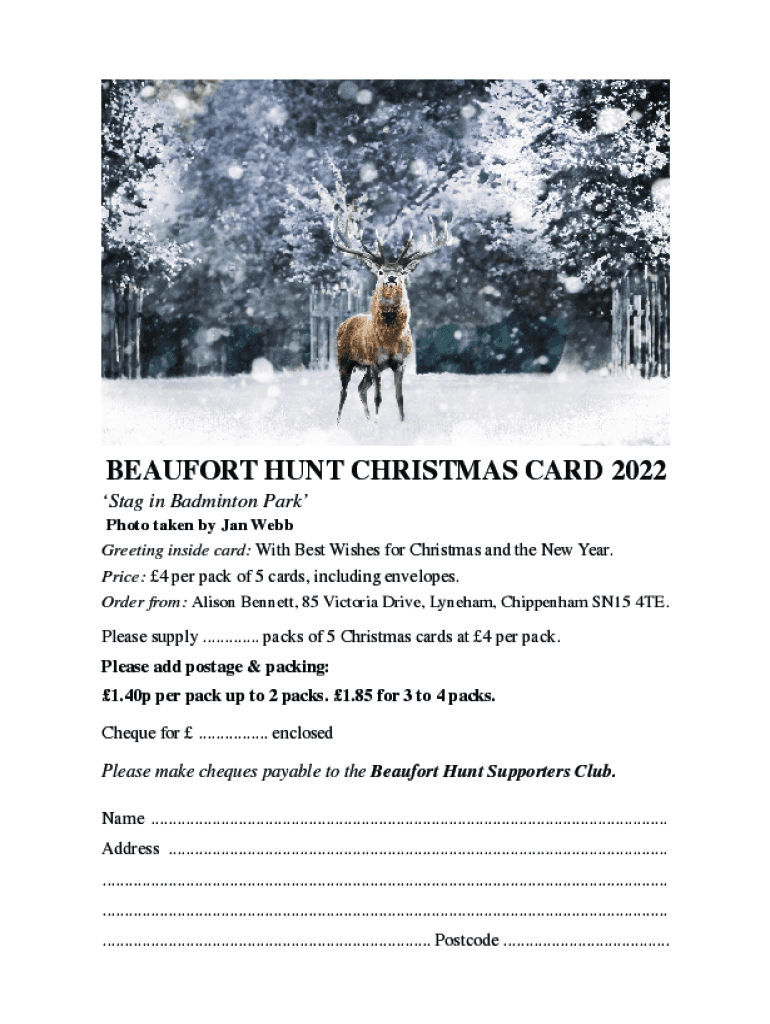 BEAUFORT HUNT CHRISTMAS CARD 2022Stag in Badminton Park