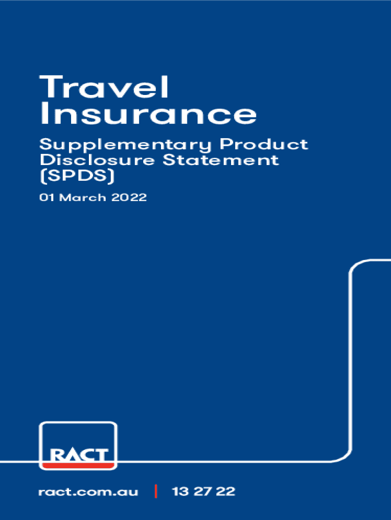Travel InsuranceSupplementary Product Disclosure Statement (SPDS) 01 March 20221Supplementary Product Disclosure Statement (SPDS) This document is an SPDS that updates and amends the RACT Travel Insurance