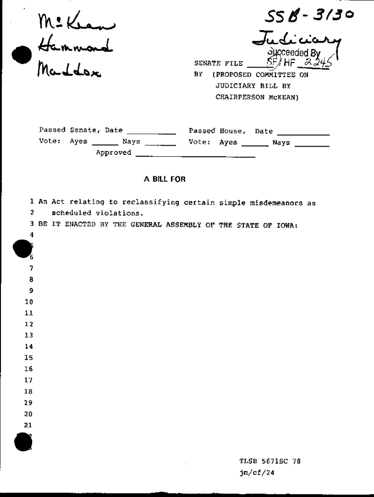 55 11fu.! . v3/o.I,1:k..V\" \'Ceeded; \"\':(SENATE FILE ,,\"\' HF 02. :24: BY (PROPOSED COMMITTEE ON(nc,....LJ..t)X;JUDICIARY BILL BY CHAIRPERSON McKEAN)Passed Senate, Date ___ Vote:AyesPassed House,Nays
