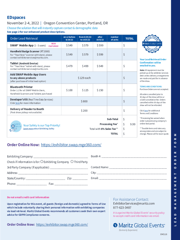 EDspaces November 24, 2022 | Oregon Convention Center, Portland, OR Choose the solution that will instantly capture contact & demographic data See page 2 for our enhanced product descriptions.For