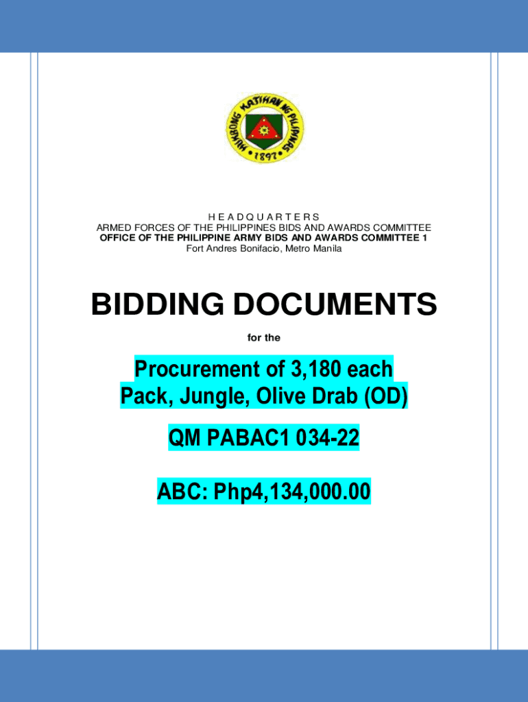 HEADQUARTERS ARMED FORCES OF THE PHILIPPINES BIDS AND AWARDS COMMITTEE OFFICE OF THE PHILIPPINE ARMY BIDS AND AWARDS COMMITTEE 1 Fort Andres Bonifacio, Metro ManilaBIDDING DOCUMENTS for theProcurement