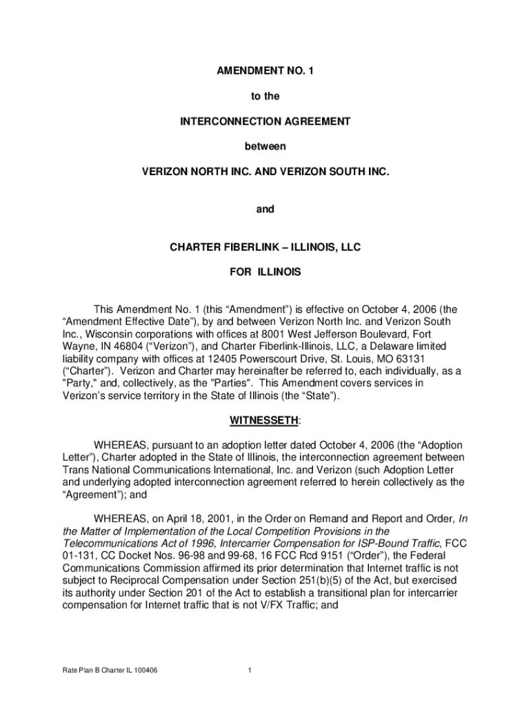 AMENDMENT NO. 1 to the INTERCONNECTION AGREEMENT between VERIZON NORTH INC. AND VERIZON SOUTH INC.andCHARTER FIBERLINK ILLINOIS, LLC FOR ILLINOISThis Amendment No. 1 (this Amendment) is effective