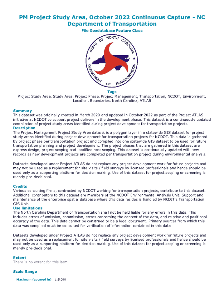 PM Project Study Area, October 2022 Continuous Capture NC Department of Transportation File Geodatabase Feature ClassTags Project Study Area, Study Area, Project Phase, Project Management, Transportation,