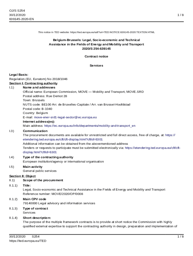 OJ/S S254 30/12/2020 6391452020EN1/8This notice in TED website: https://ted.europa.eu/udl?uriTED:NOTICE:6391452020:TEXT:EN:HTMLBelgiumBrussels: Legal, Socioeconomic and Technical Assistance in the