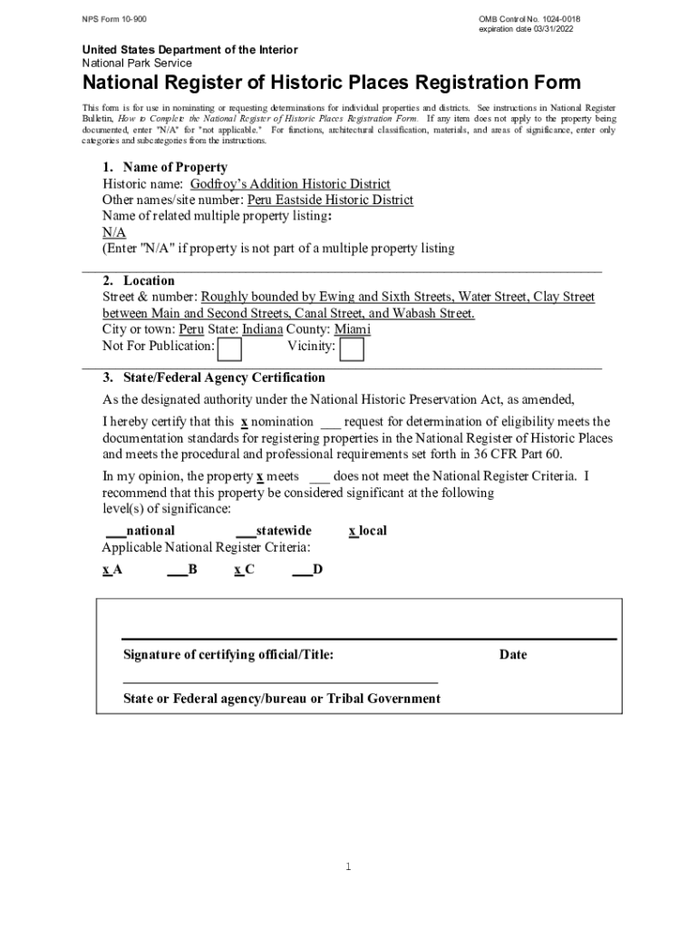 NPS Form 10900OMB Control No. 10240018 expiration date 03/31/2022United States Department of the Interior National Park ServiceNational Register of Historic Places Registration Form This form is for