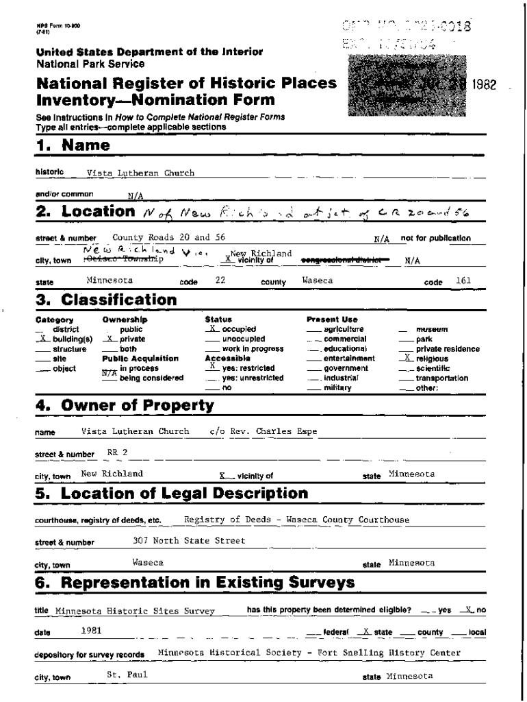 NPS Form 10900 (781)United States Department of the Interior National Park ServiceNational Register of Historic Places InventoryNomination Form1982See instructions in How to Complete National Register