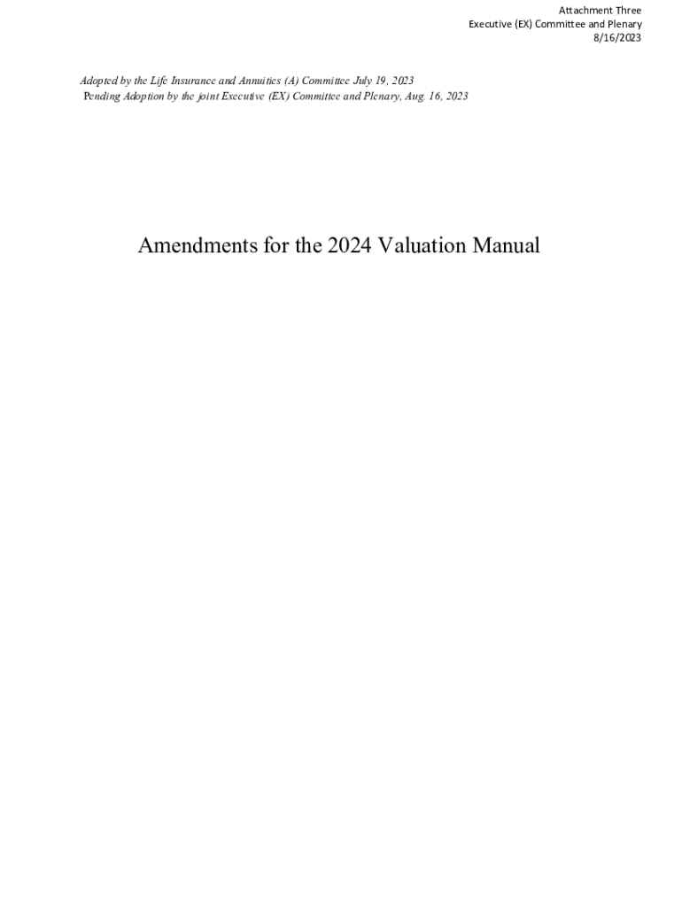 Attachment Three Executive (EX) Committee and Plenary 8/16/2023 Adopted by the Life Insurance and Annuities (A) Committee July 19, 2023 Pending Adoption by the joint Executive (EX) Committee and Plenary,