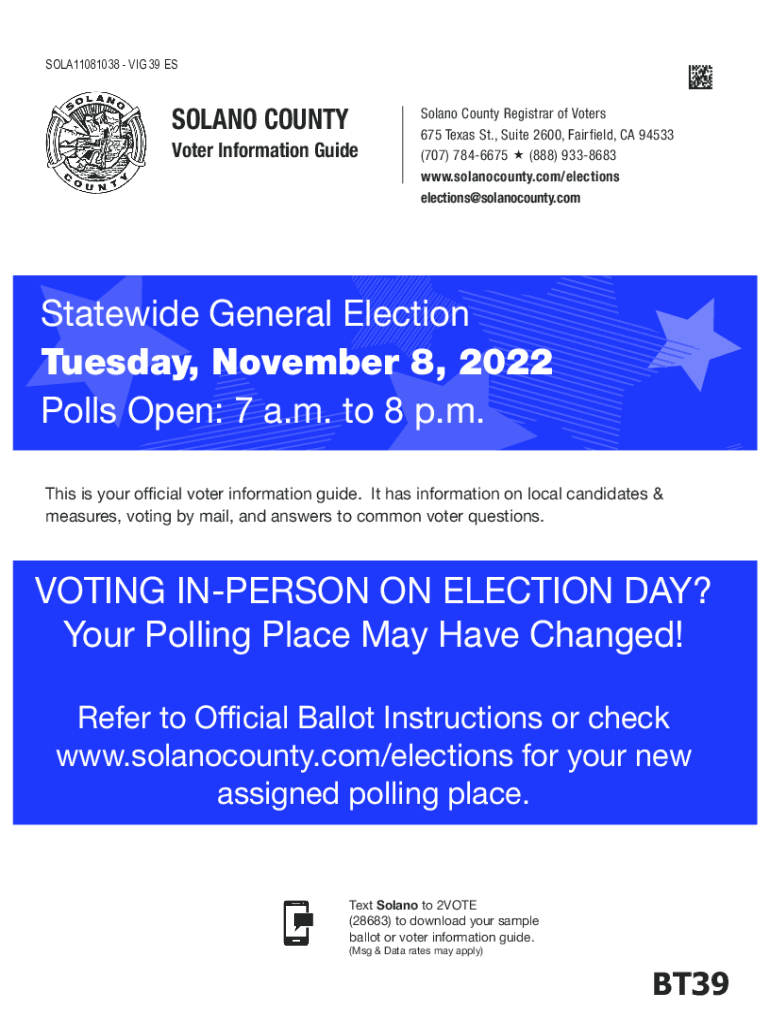 SOLA11081038 VIG 39 ESSOLANO COUNTY Voter Information GuideSolano County Registrar of Voters 675 Texas St., Suite 2600, Fairfield, CA 94533 (707) 7846675 (888) 9338683 www.solanocounty.com/elections