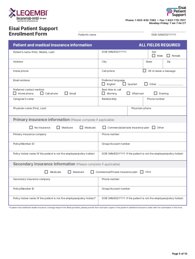 Healthcare providers or patients may be required to file Eisai Patient Support Enrollment, depending on the program's guidelines.