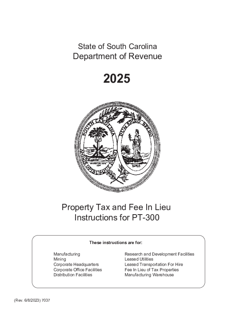 State of South CarolinaDepartment of Revenue2025Property Tax and Fee In Lieu
