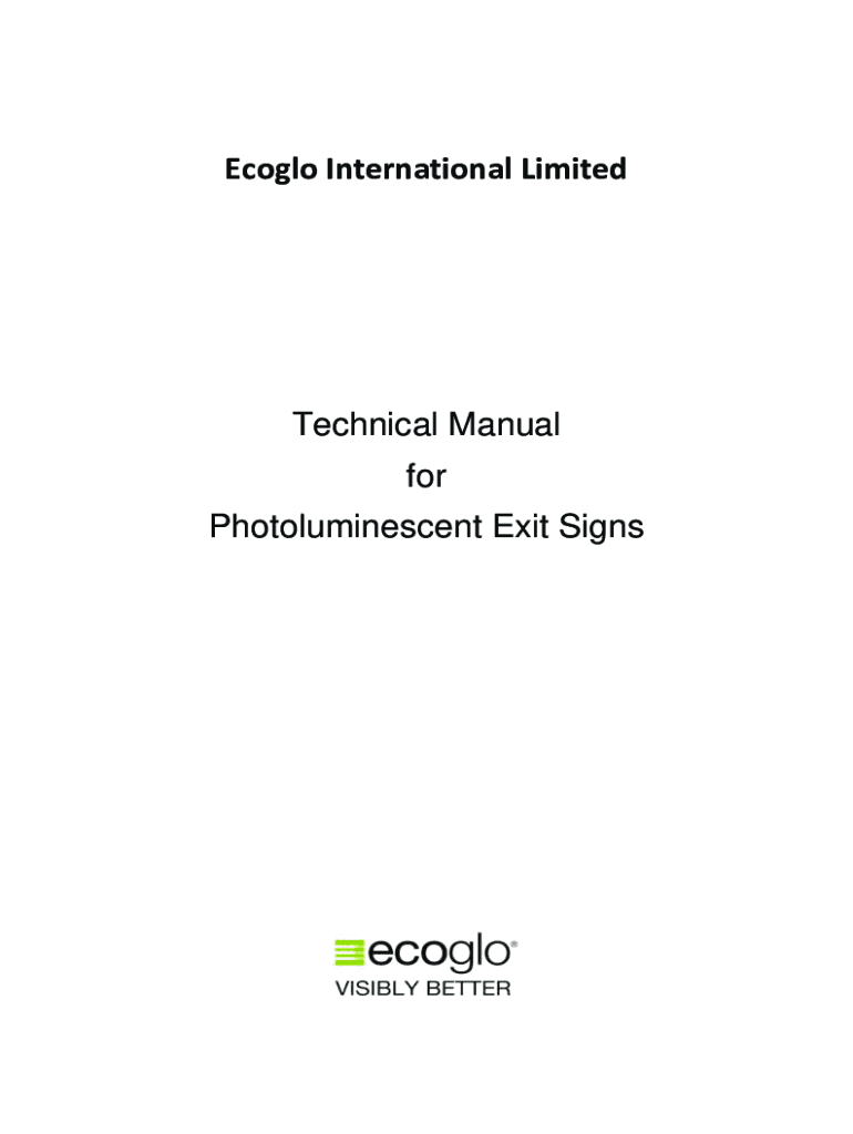 Ecoglo International LimitedTechnical Manual for Photoluminescent Exit SignsContents: Photoluminescent Exit Signs MasterFormat Specification...3 Appendices........................102V23.2Section 26