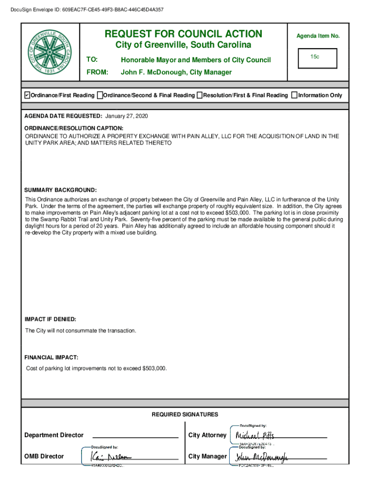 DocuSign Envelope ID: 609EAC7FCE4549F3B8AC446C45D4A357REQUEST FOR COUNCIL ACTIONAgenda Item No.City of Greenville, South CarolinaTO:Honorable Mayor and Members of City CouncilFROM:John F. McDonough,