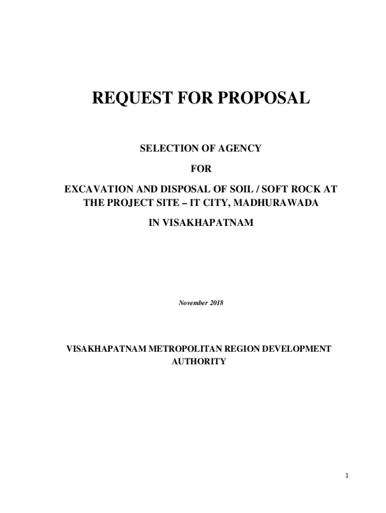 REQUEST FOR PROPOSAL SELECTION OF AGENCY FOR EXCAVATION AND DISPOSAL OF SOIL / SOFT ROCK AT THE PROJECT SITE IT CITY, MADHURAWADA IN VISAKHAPATNAMNovember 2018VISAKHAPATNAM METROPOLITAN REGION DEVELOPMENT