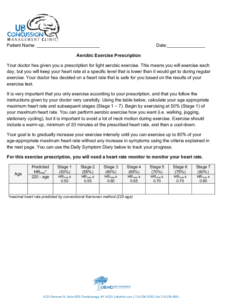 Patient Name: ___Date:___Aerobic Exercise Prescription Your doctor has given you a prescription for light aerobic exercise. This means you will exercise each day, but you will keep your heart rate