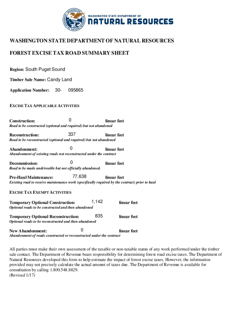 TIMBER NOTICE OF SALE SALE NAME: CANDY LANDAGREEMENT NO: 30095865AUCTION:February 26, 2019 starting at 10:00 a.m., COUNTY: Thurston South Puget Sound Region Office, Enumclaw, WASALE LOCATION:Sale
