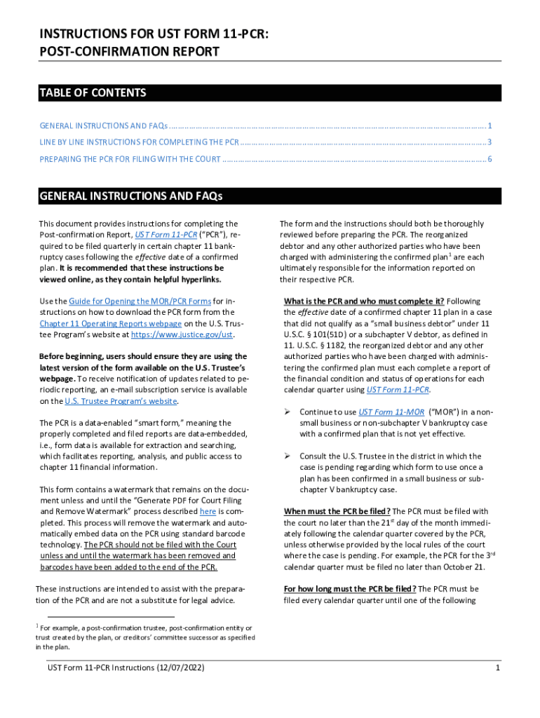 INSTRUCTIONS FOR UST FORM 11PCR: POSTCONFIRMATION REPORT TABLE OF CONTENTS GENERAL INSTRUCTIONS AND FAQs ...............................................................................................................................................