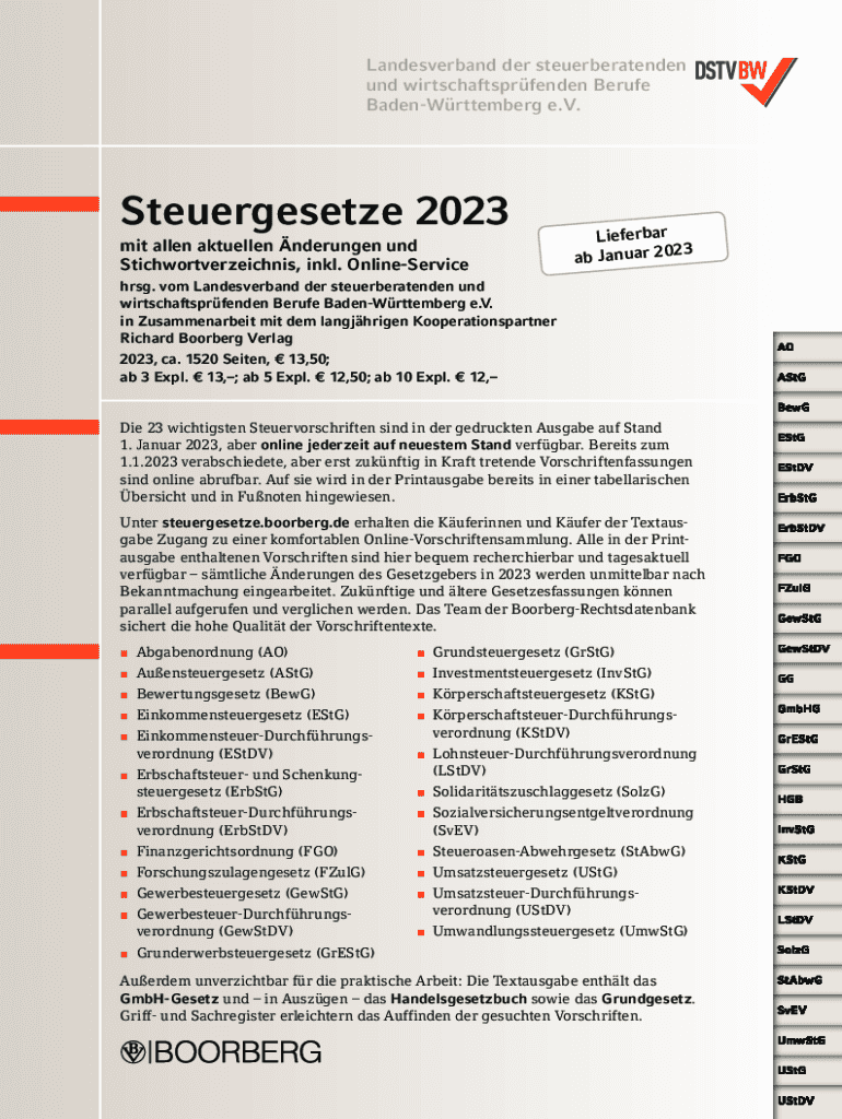 Landesverband der steuerberatenden und wirtschaftsprfenden Berufe BadenWrttemberg e. V.Steuergesetze 2023 mit allen aktuellen nderungen und Stichwortverzeichnis, inkl. OnlineServiceLieferbar 23 ab