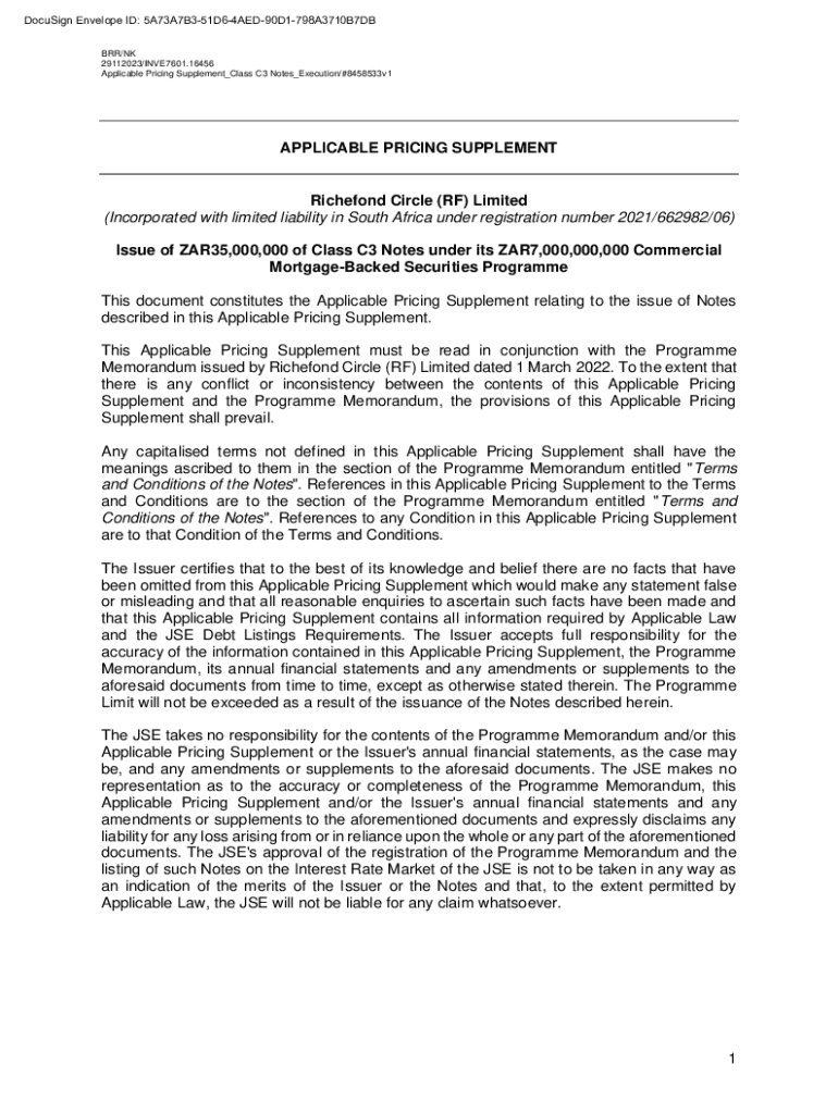 DocuSign Envelope ID: 5A73A7B351D64AED90D1798A3710B7DB BRR/NK 29112023/INVE7601.16456 Applicable Pricing Supplement_Class C3 Notes_Execution/#8458533v1APPLICABLE PRICING SUPPLEMENTRichefond Circle
