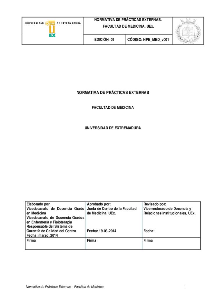 Obtener el gratis Normativa de Prcticas ExternasFacultad de Medicina