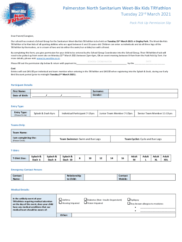 Pack Pick Up Permission Slipware Parent/Caregiver,