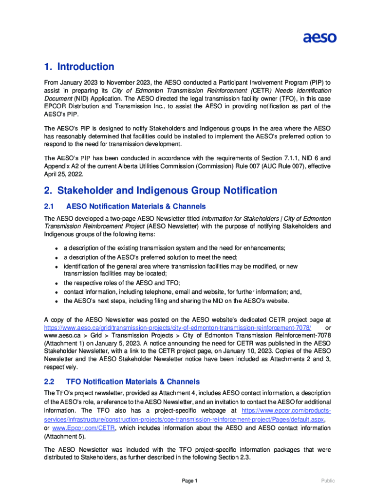 From January 2023 to November 2023, the AESO conducted a Participant Involvement Program (PIP) to