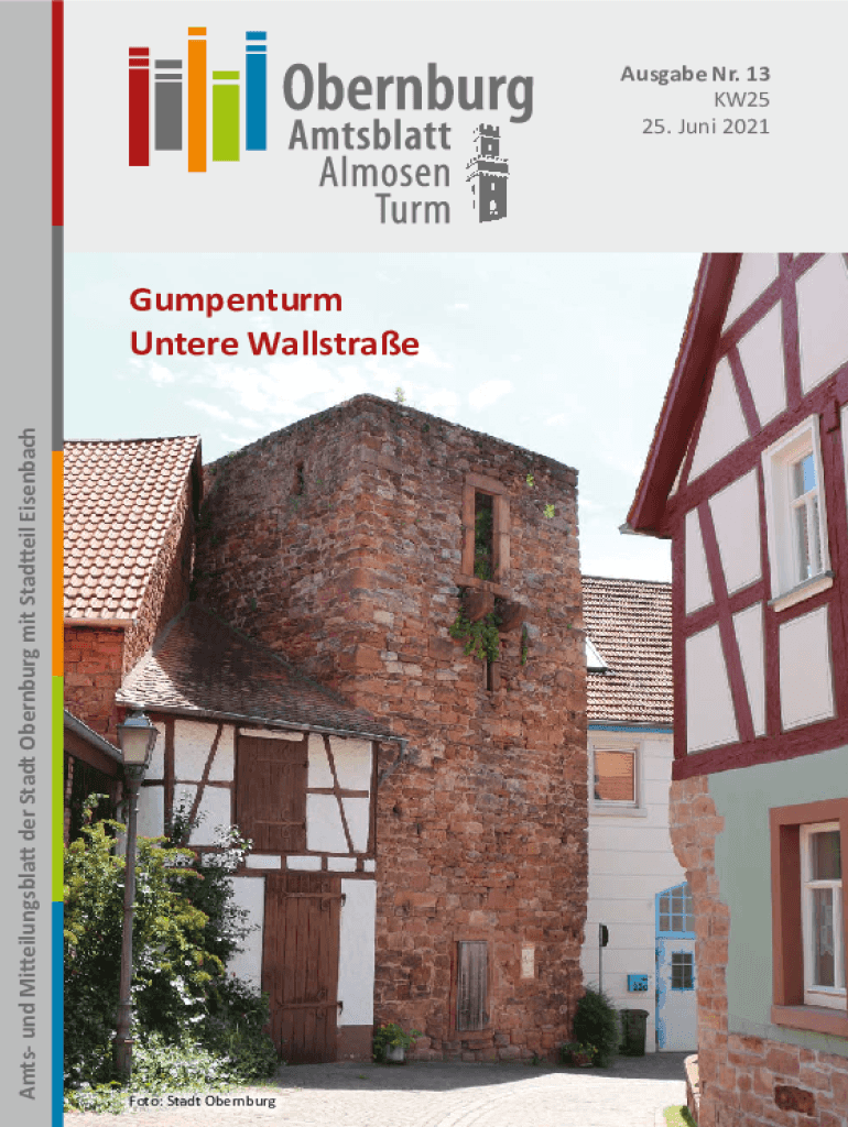 Ausgabe Nr. 13 KW25 25. Juni 2021Amts und Mieilungsbla der Stadt Obernburg mit Stadeil EisenbachGumpenturm Untere WallstraeFoto: Stadt Obernburgder 1. Bauabschnitt der Sanierungsarbeiten an der B