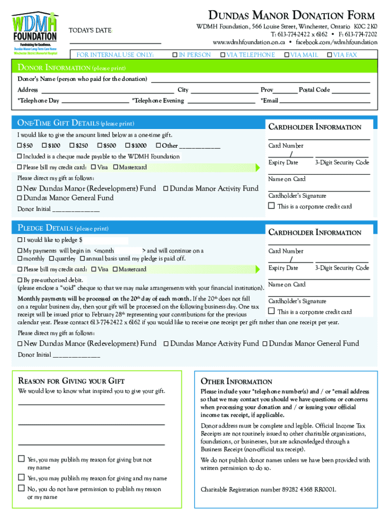 Get the free DunDas manoR Donation foRm - WDMH Foundation's